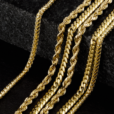 Anchor LinksBall LinksByzantine LinksCable LinksCuban LinksFancy LinksFigaro LinksFranco LinksRope LinksTennis Chains